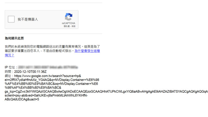 Google出現 – 我們的系統偵測到您的電腦網路送出的流量有異常情況.. 未分類cpicadmin2021-04-16這是中毒了嗎? 最近有不少客戶遇到這個問題,不管照著步驟操作幾次證明『我不是機器人』…都是徒勞無功…